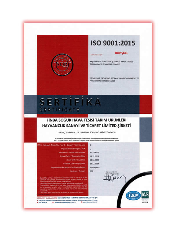 The company's overall policy is to provide reliable, quality and healthy products and services directly to the customer. In line with the developing technology in this direction, without sacrificing quality to maintain and maintain the freshness of the product to establish long-term facilities.Fruit production is increasing in our region and in the world. It is not possible to wait for the shorter harvest period of the fruits. This does not compromise freshness when storing and storing products. The general purpose of our company is to provide a fast, clean, healthy and reliable facility in storage operations.